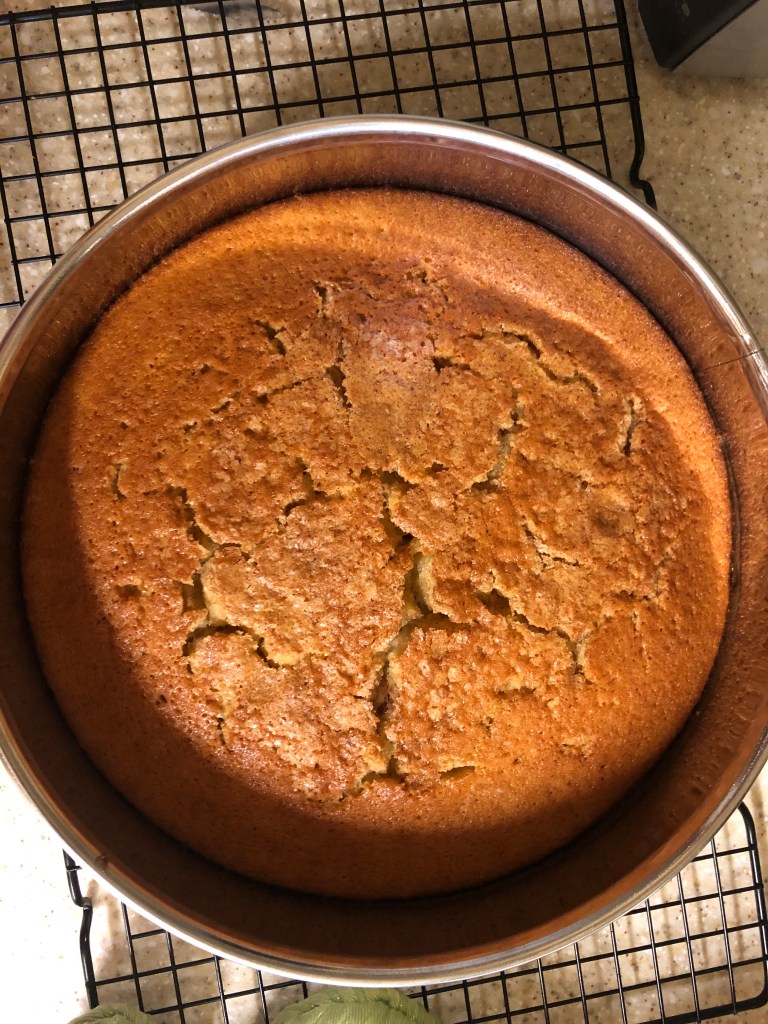 - Preheat oven to 180 C / 350 degrees F. Grease and flour or line with parchment paper, a 9″ round pan. Set aside.