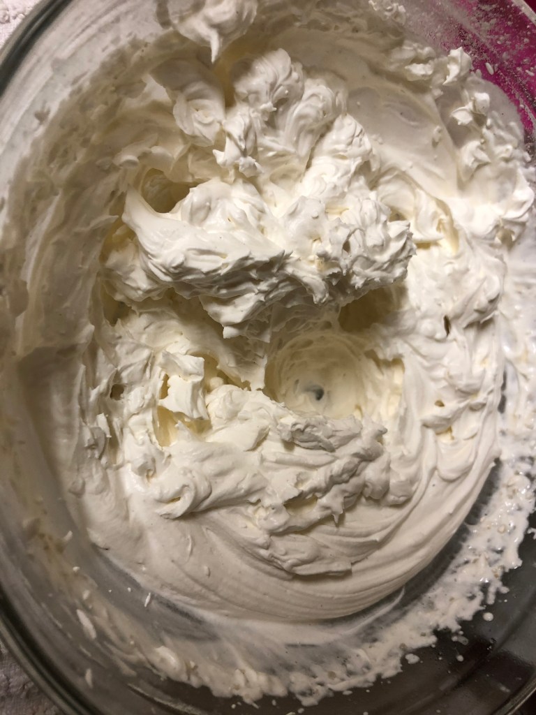 - Whip the heavy cream until soft peaks are formed.
